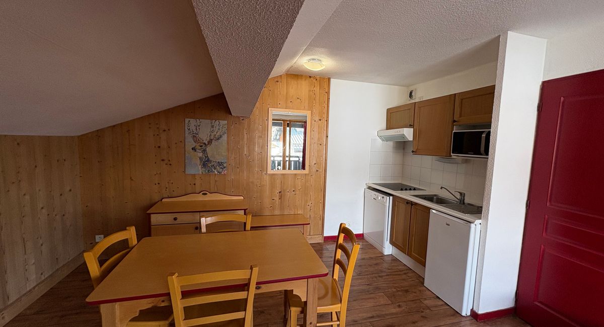 Welcome to our cozy 2-room apartment located in Residence Les 4 Vallées, bâtiment Marmottes, in the heart of St François Longchamp. Ideal for a family or a small group of friends, it accommodates up to 4 guests. The apartment features a living area with a convertible BZ sofa and a bedroom with two bunk beds.