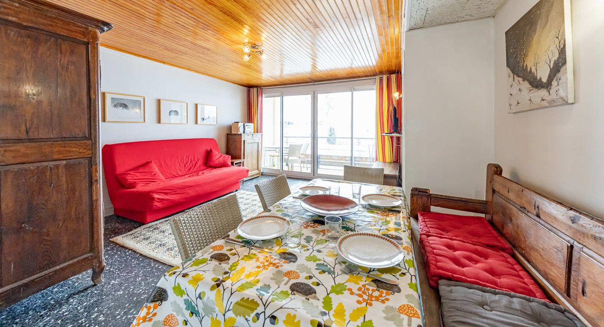 6-person flat in the resort centre, in the Résidence Le Montjoie, south-facing balcony at the foot of the slopes and shops.