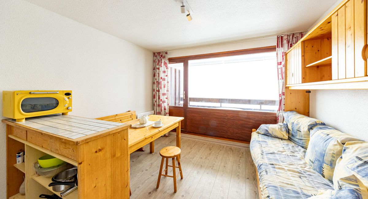 Located at the top of the resort in the Résidence Le Sorbier, this 28 m² flat is opposite the Mollaret chairlift and the ESF meeting point.