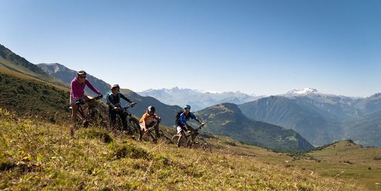 Comme les coureurs du Tour de France, prenez la route en direction du Col de la Madeleine pour ensuite emprunter sur votre droite une route carrossable. Vous découvrirez une jolie ferme d’alpage fabriquant le fromage local : le Beaufort. Traversez les pistes de ski du domaine skiable du Grand Domaine pour ensuite emprunter un petit chemin sur votre droite afin d’entamer une belle descente vers le Col du Paradis. Vous voici au Col du Paradis à 1665 m d’altitude où vous aurez une magnifique vue sur les Aiguilles d’Arves et le glacier de l’Etendard. N’oubliez pas les appareils photo !