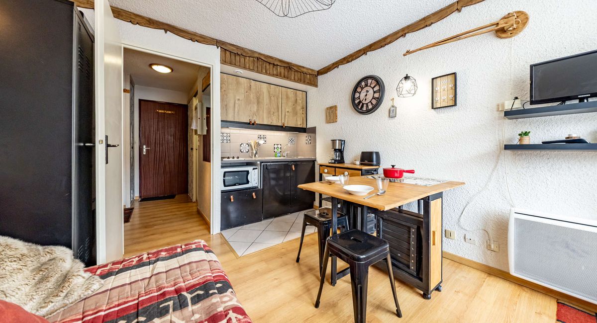 This charming 20m² studio, with its modern, industrial decor, is ideal for sports holidays at the foot of the Mollaret chairlift and close to the shops.