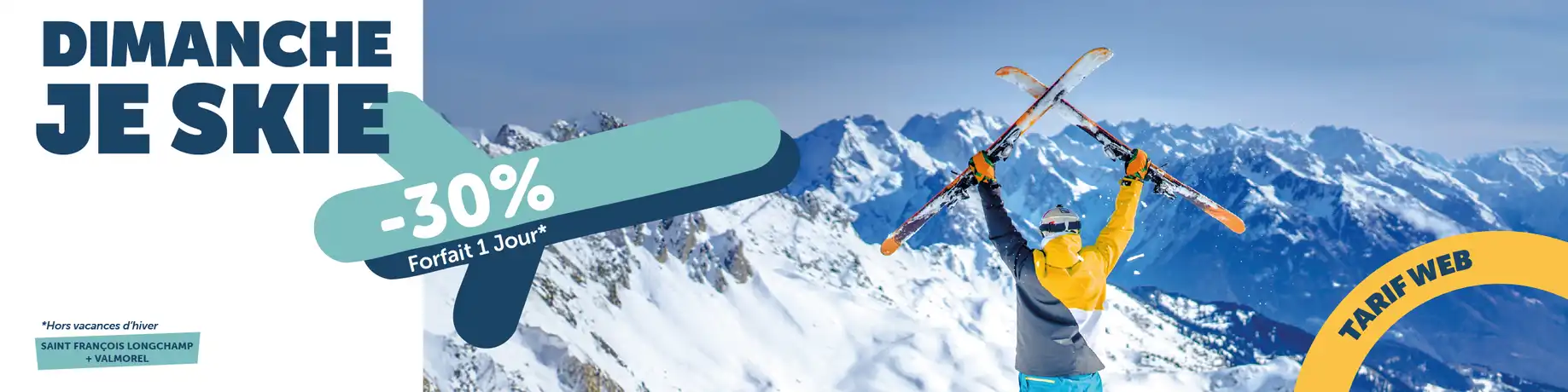 Le dimanche, bénéficiez d'une remise de de 30 % sur votre forfait ski à la journée sur le Grand Domaine !