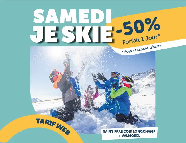 Promo exceptionnelle de -50% sur le forfait 1 jour pour accéder aux pistes du Grand Domaine ! (hors vacances de février/mars)